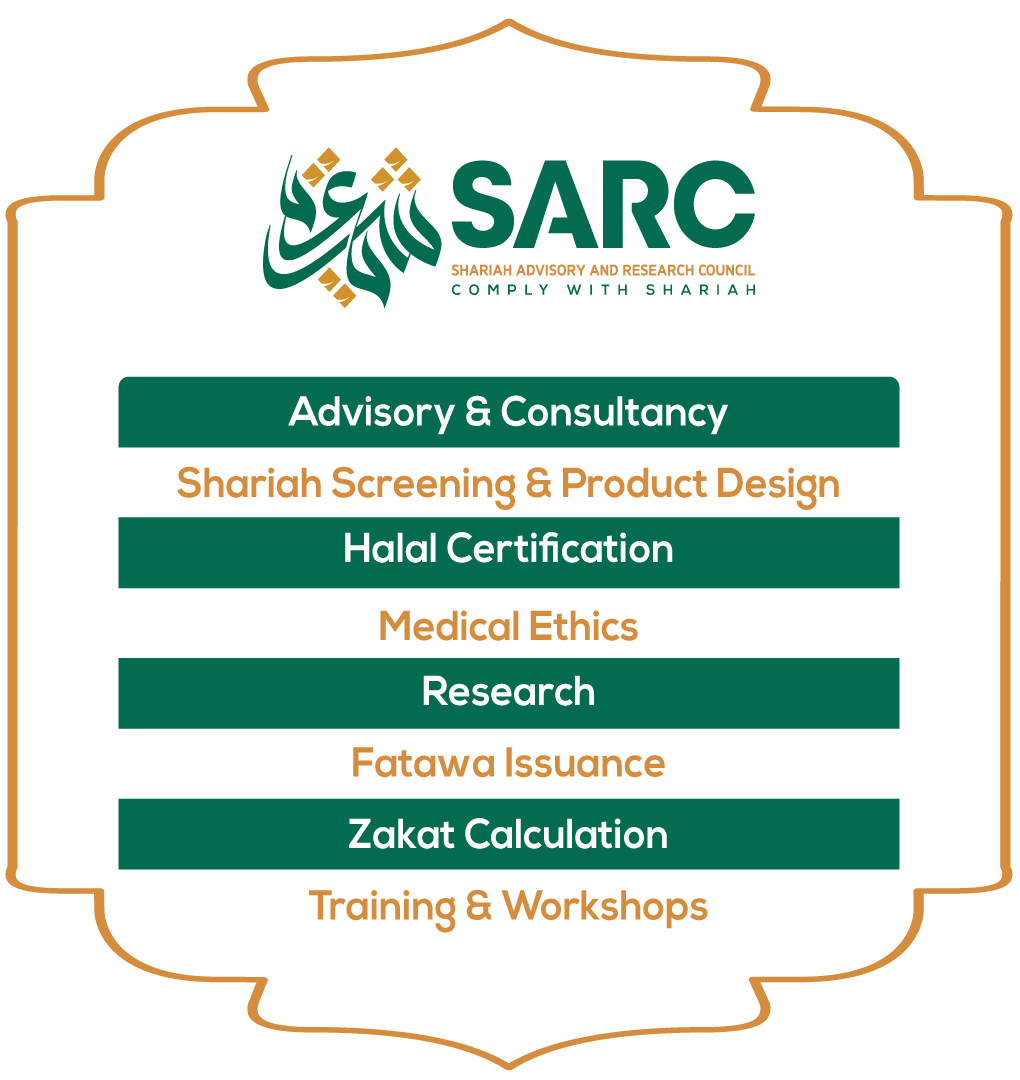 Shariah Advisory and Research Council (SARC) Provides advisory, consultation, guidance, governance, audit, development of Shariah-compliant solutions, certification, research, training, and Fatawa issuance services to financial and non-financial institutions worldwide, focusing on areas where adherence to Shariah is essential.